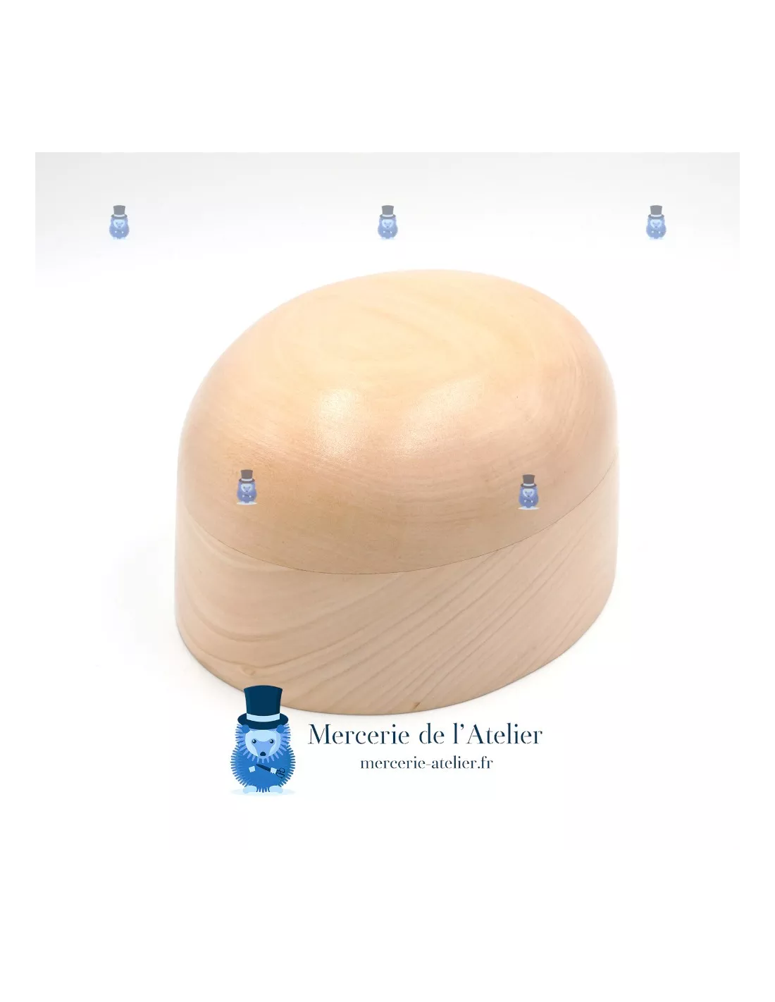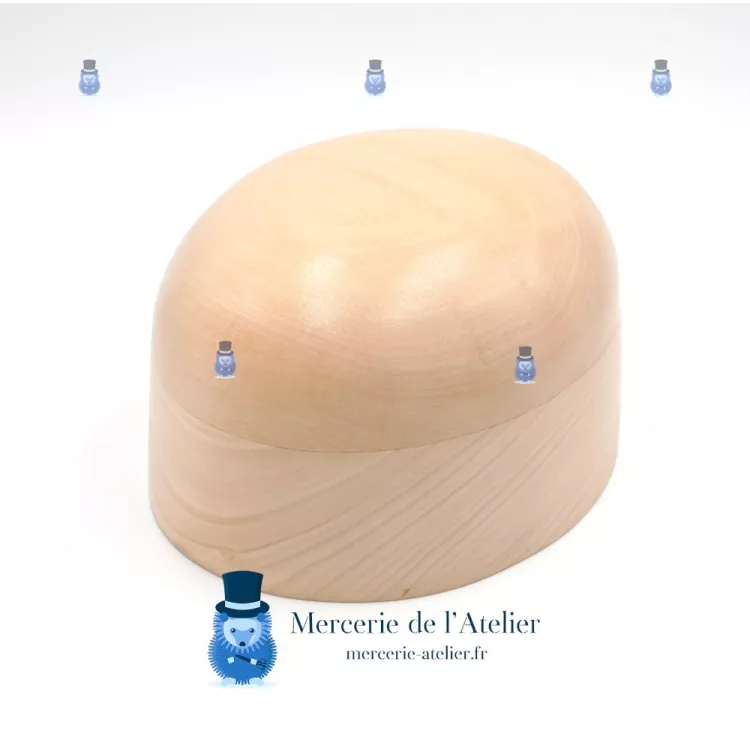 La base de la forme est ovale. Cette calotte est en forme de plot, c'est à dire que la base est plus large que le haut de la calotte. Il y a une légère platitude sur le top de la calotte. Idéal pour le mascotage à main levée.