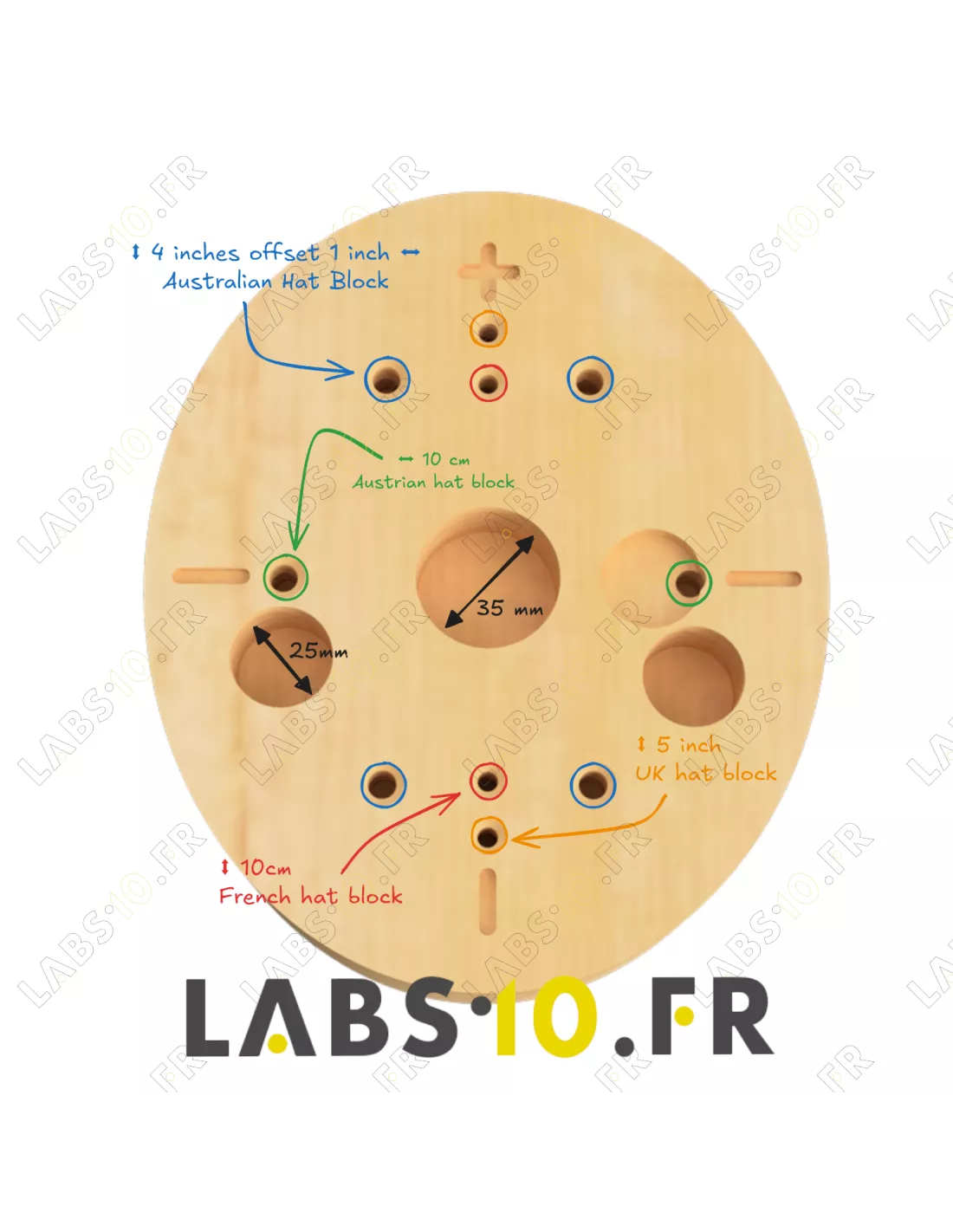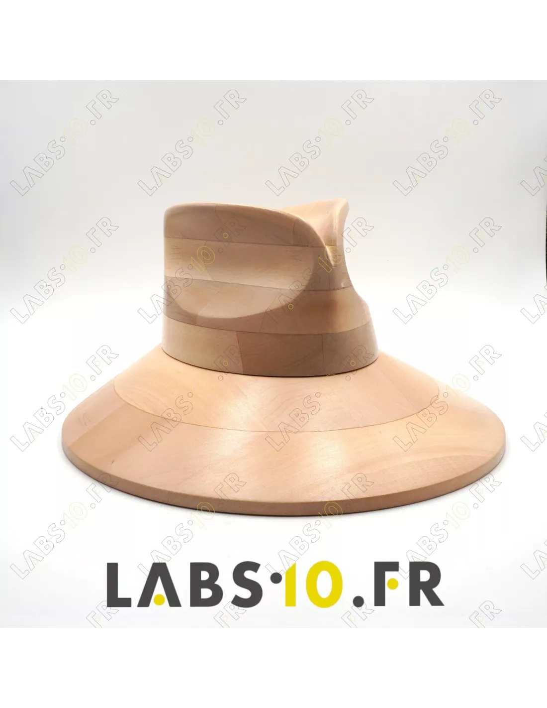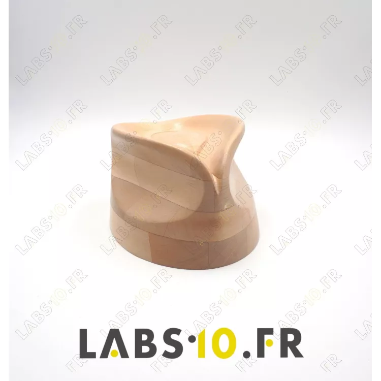 Cette calotte type fedora est destinée au moulage des feutres, pailles et diverses matières textiles de chapellerie. Elle est intégralement fabriquée en France à Tergnier par labs10.fr, à partir de bois de tilleul français sélectionné pour sa stabilité. La finition vernie assure une protection contre la chaleur et l'humidité lors du travail à la vapeur.